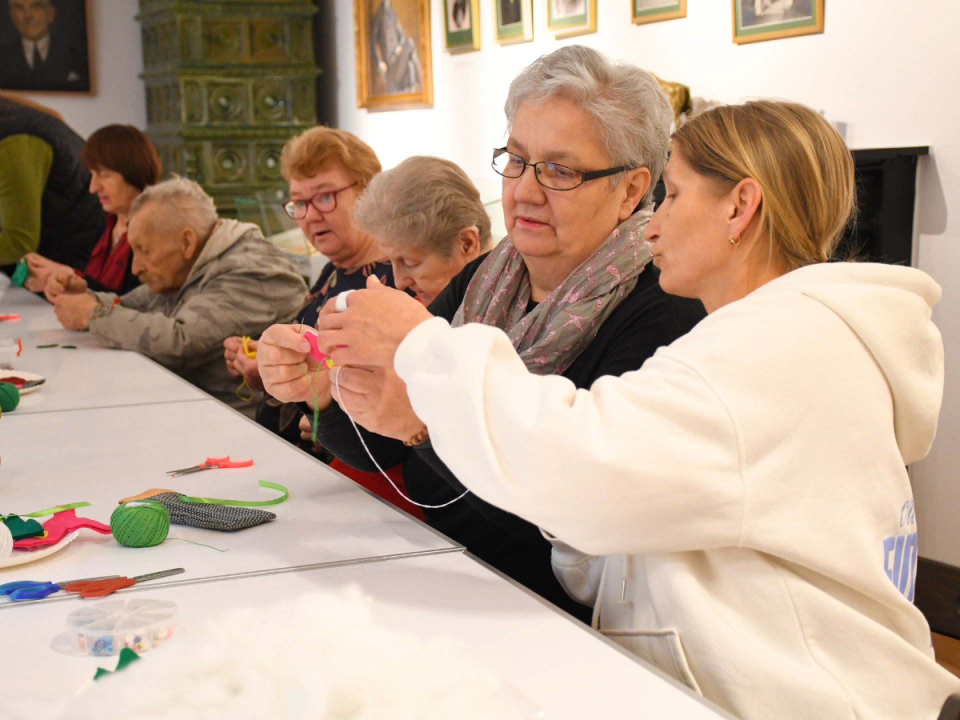 Pod okiem prowadzących powstawały filcowe gwiazdki, serduszka, anioły i świąteczne zawieszki, które wprowadziły do muzealnej sali świąteczny klimat. Wspólne tworzenie stało się okazją nie tylko do rozwijania artystycznych umiejętności, lecz także do rozmów, wymiany wspomnień i spędzenia czasu w serdecznej atmosferze.