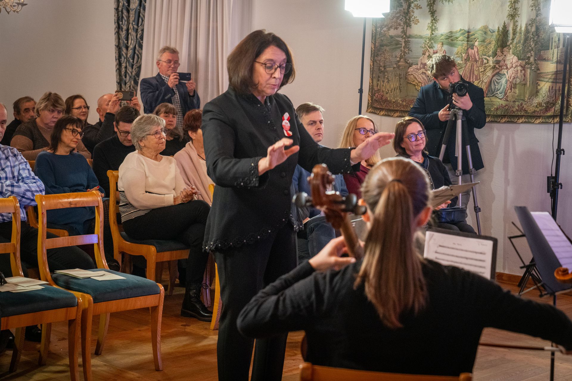 Koncert poprowadziła Teresa Krasowska – dyrygentka, kierownik artystyczny, wybitna pedagog i laureatka wielu nagród państwowych, w tym medalu „Gloria Artis” oraz Złotego Krzyża Zasługi. Pod jej batutą wystąpili:
