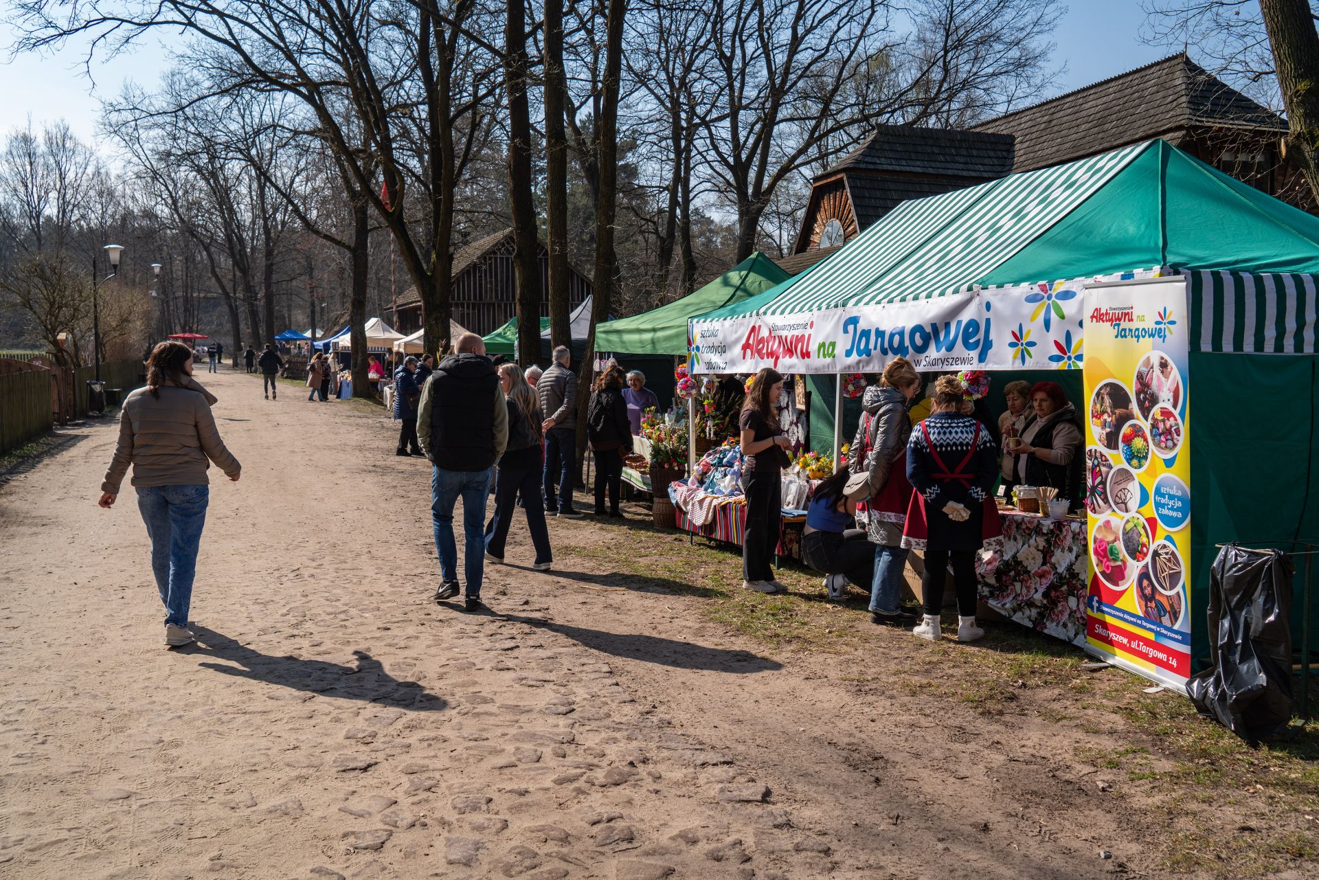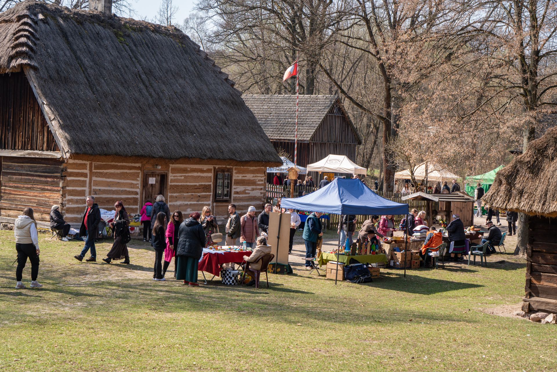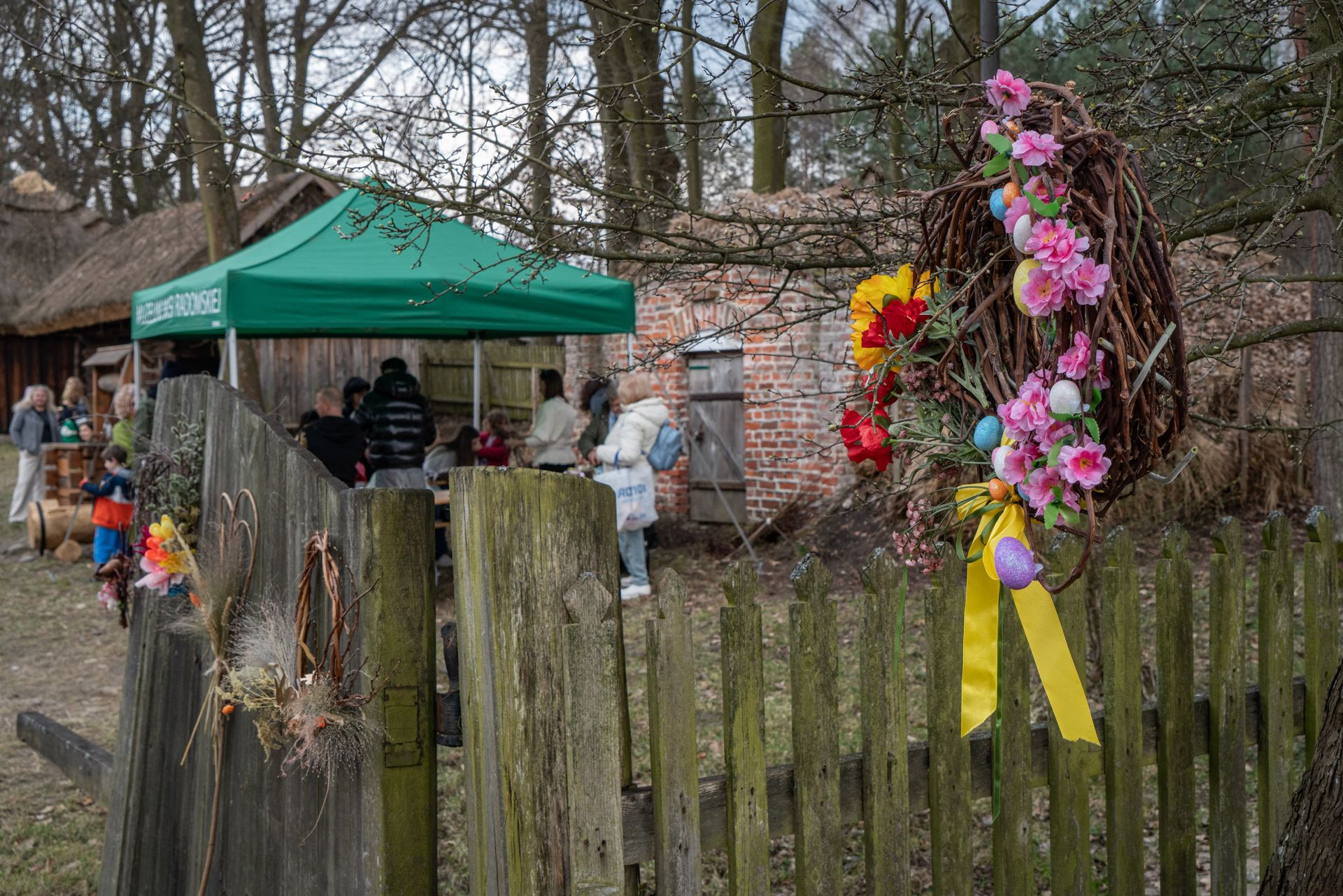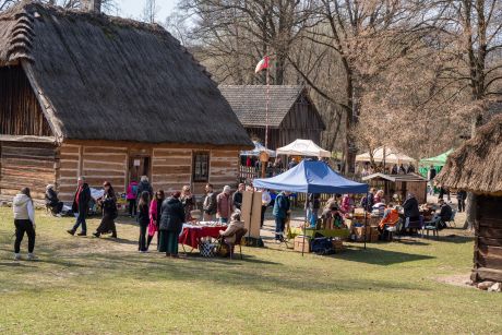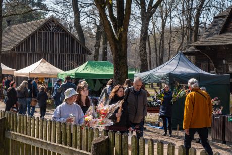 Już od godzin porannych na terenie zespołu zagród odbywał się kiermasz wielkanocny, który cieszył się dużym zainteresowaniem odwiedzających. Na stoiskach można było znaleźć tradycyjne palmy, pisanki, ceramikę, wyroby z wikliny, hafty i koronki, a także regionalne potrawy. Zwiedzający chętnie korzystali również z możliwości oglądania ekspozycji stałej muzeum, wzbogaconej o świąteczne aranżacje.