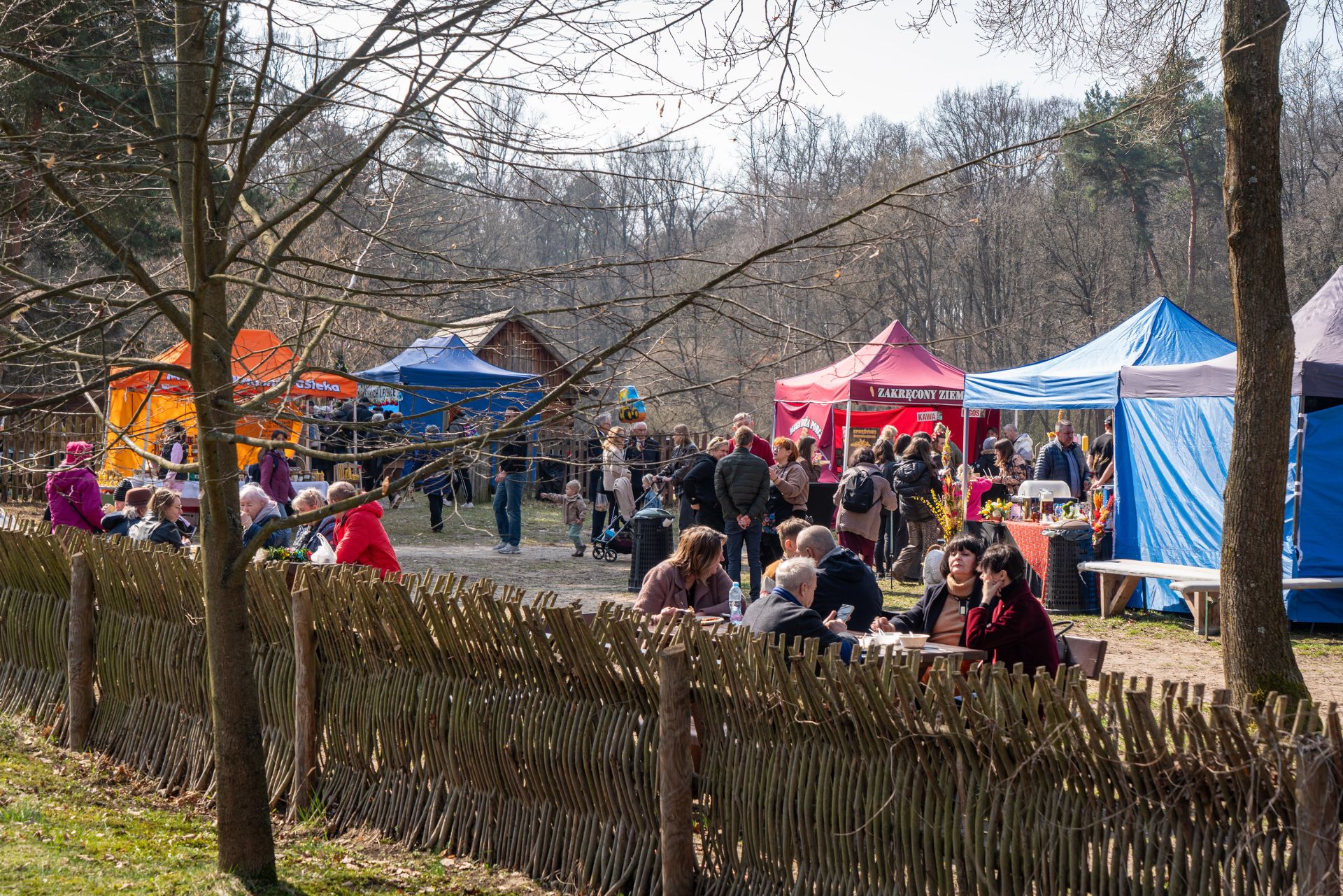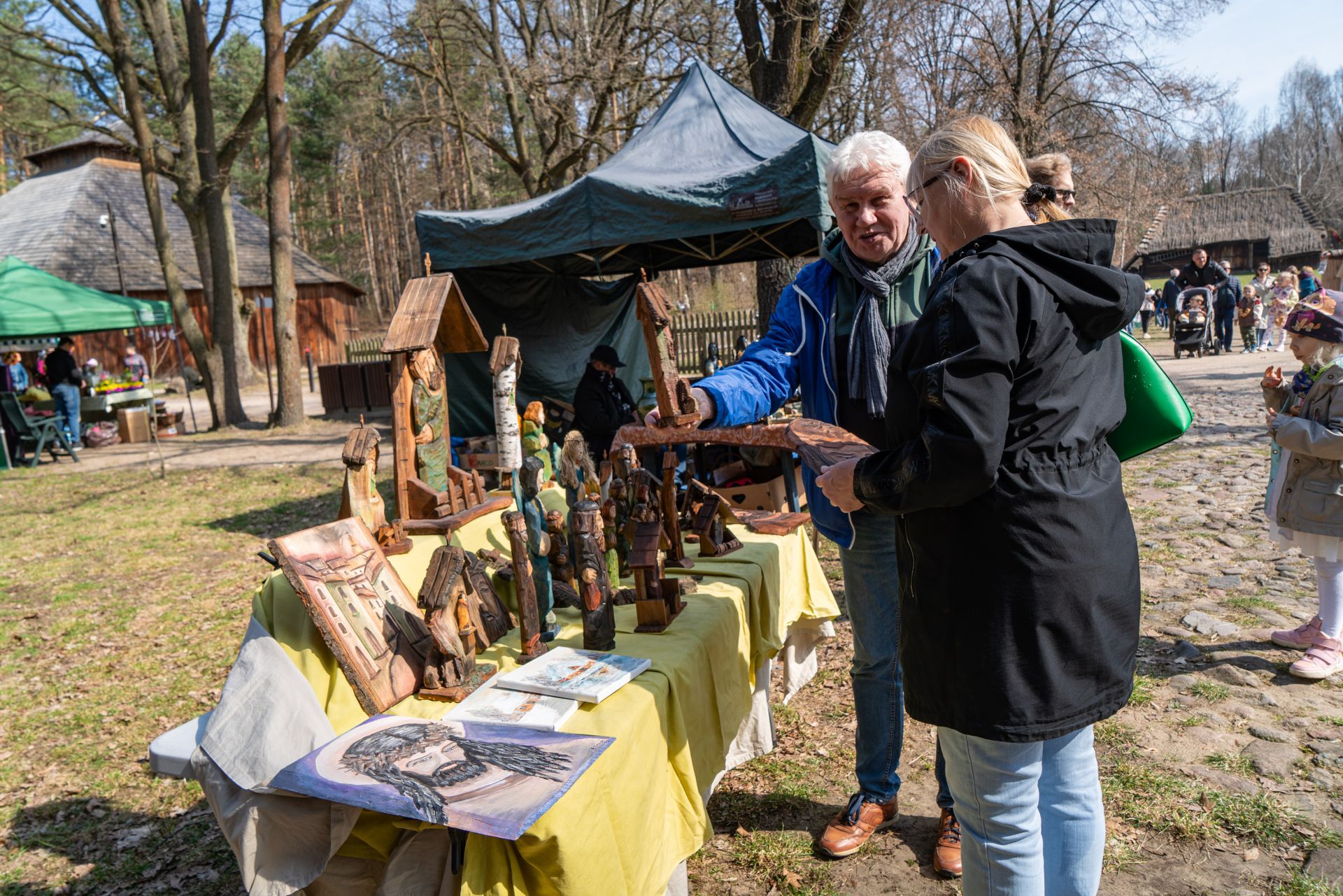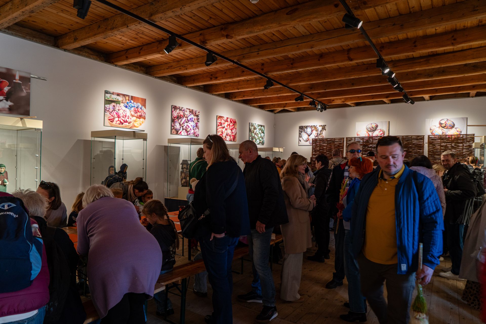Już od godzin porannych na terenie zespołu zagród odbywał się kiermasz wielkanocny, który cieszył się dużym zainteresowaniem odwiedzających. Na stoiskach można było znaleźć tradycyjne palmy, pisanki, ceramikę, wyroby z wikliny, hafty i koronki, a także regionalne potrawy. Zwiedzający chętnie korzystali również z możliwości oglądania ekspozycji stałej muzeum, wzbogaconej o świąteczne aranżacje.