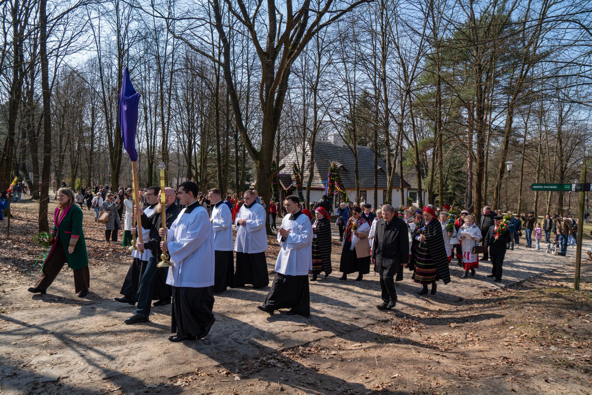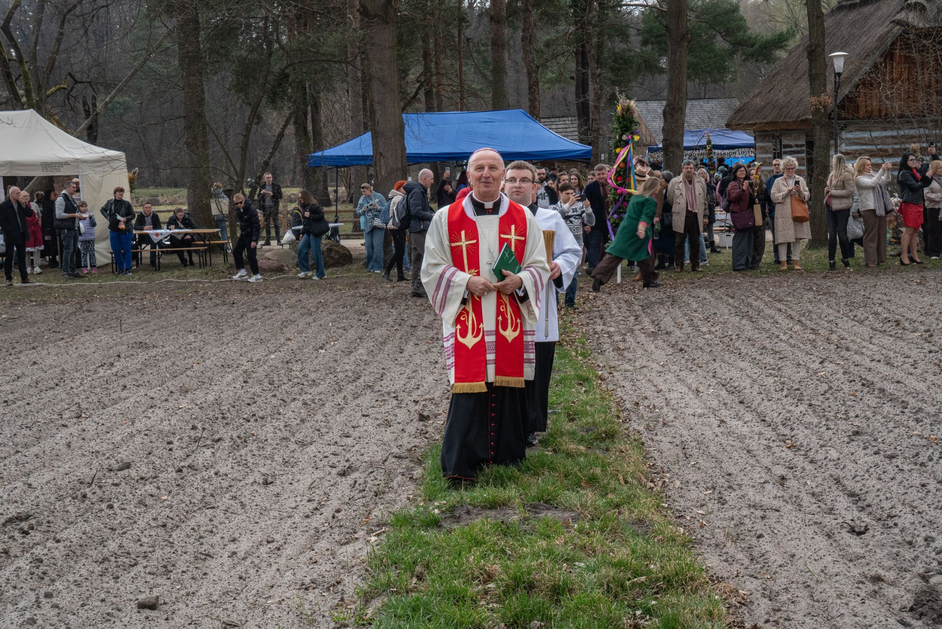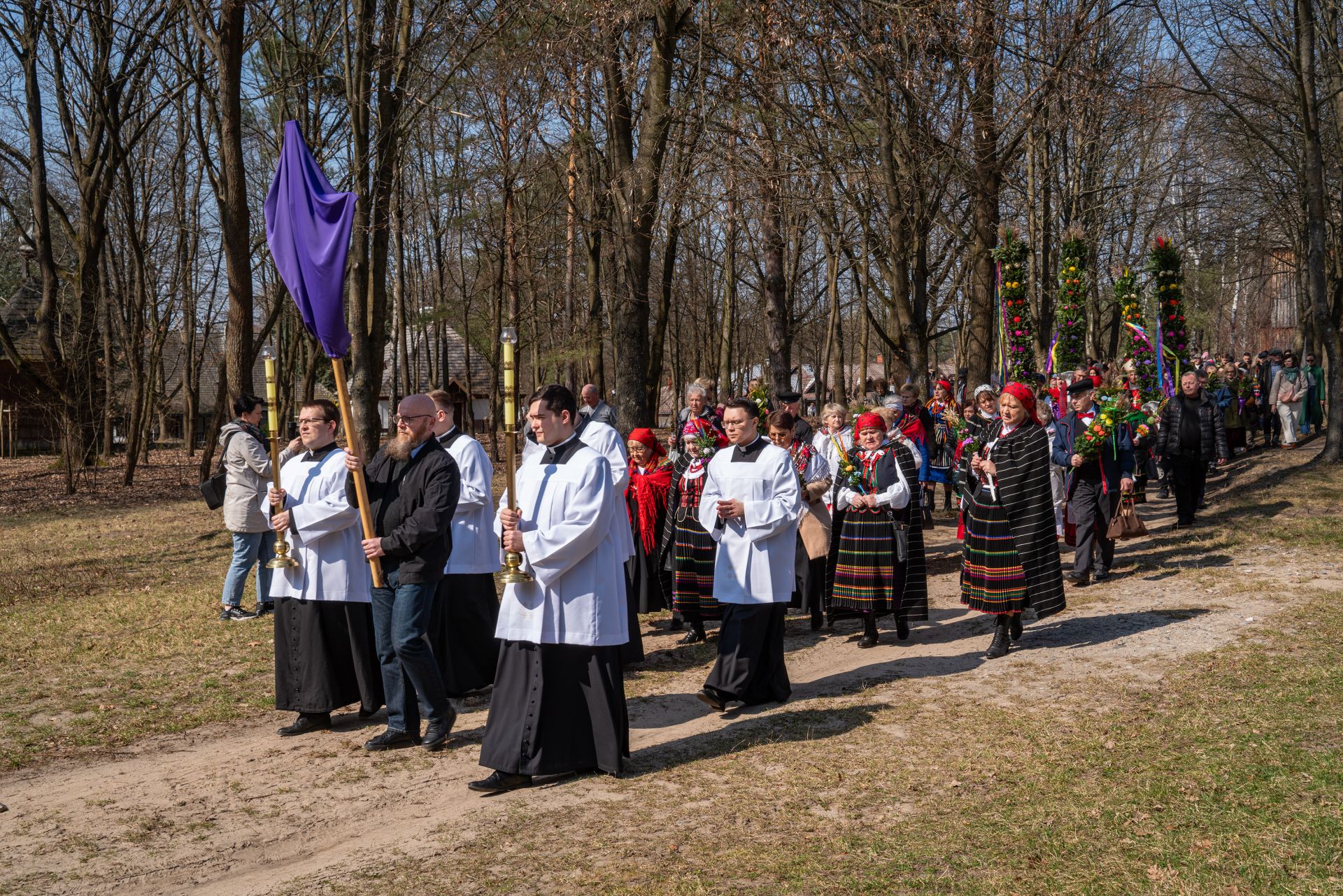W tym roku na zakończenie obchodów odbyła się uroczysta procesja przez teren skansenu na pola, gdzie – zgodnie ze starym zwyczajem – wkopano palmy. Następnie ks. biskup Marek Solarczyk poświęcił pola, podkreślając symboliczny wymiar tego obrzędu i jego związek z dawną kulturą agrarną.