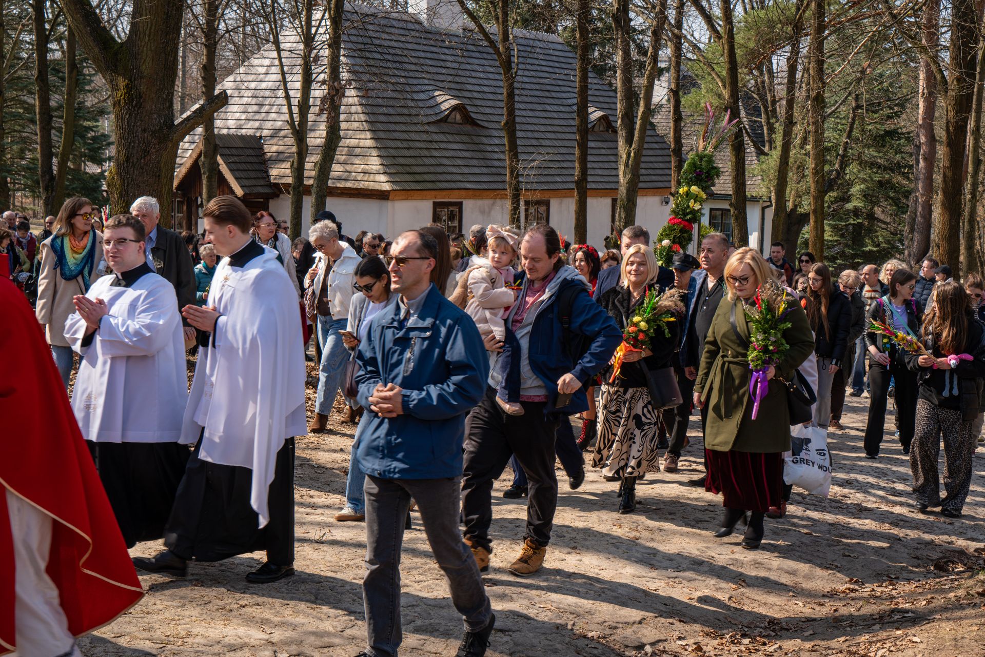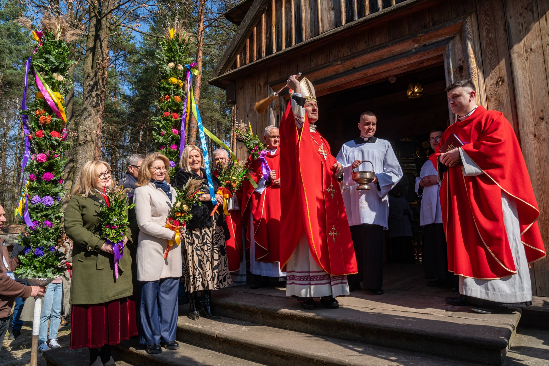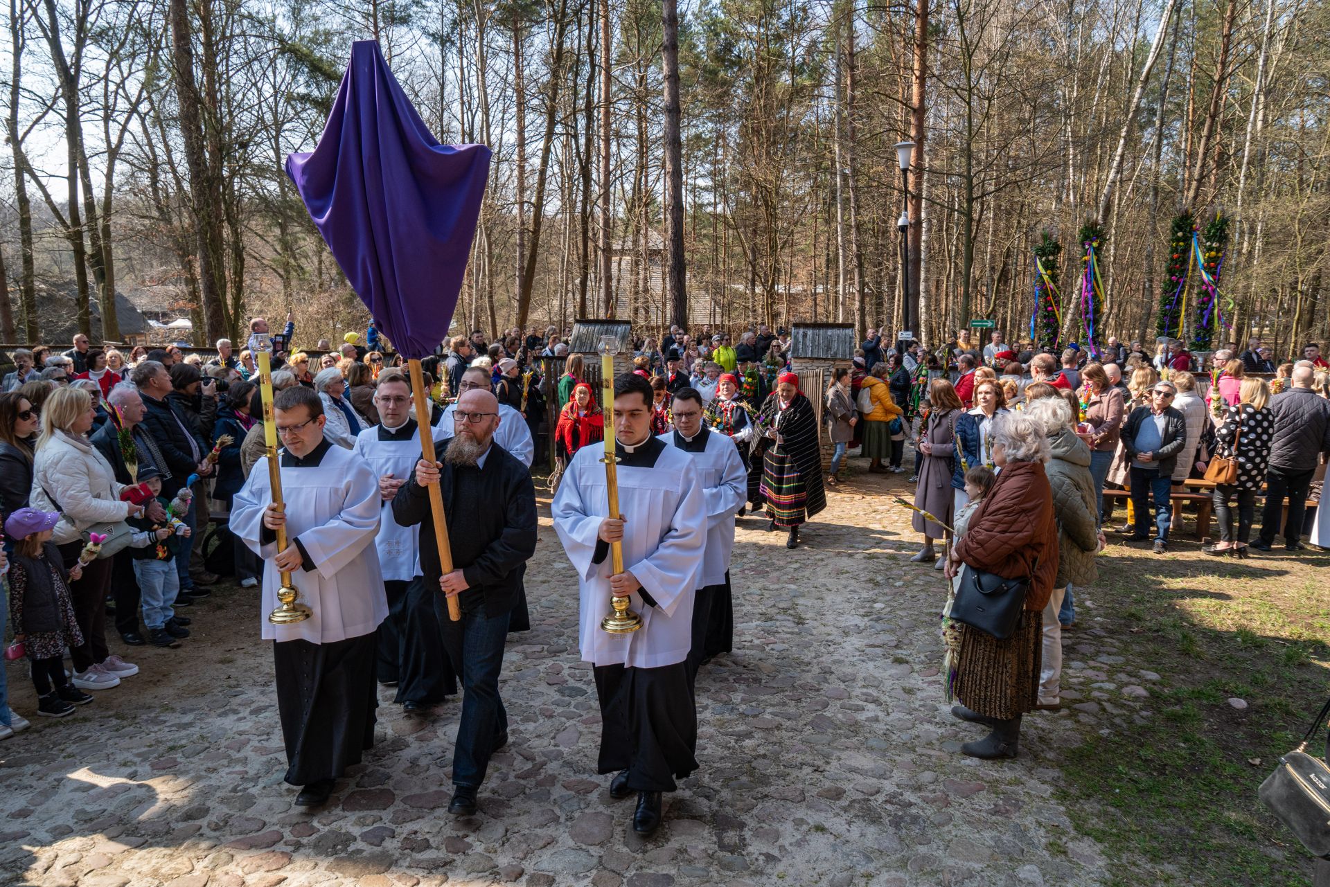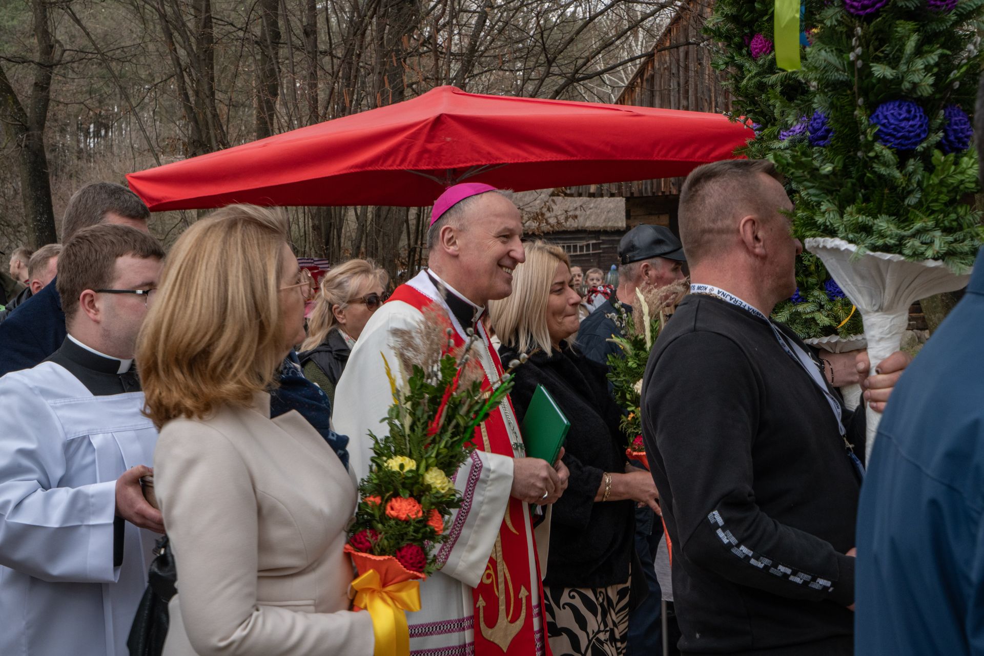 W tym roku na zakończenie obchodów odbyła się uroczysta procesja przez teren skansenu na pola, gdzie – zgodnie ze starym zwyczajem – wkopano palmy. Następnie ks. biskup Marek Solarczyk poświęcił pola, podkreślając symboliczny wymiar tego obrzędu i jego związek z dawną kulturą agrarną.
