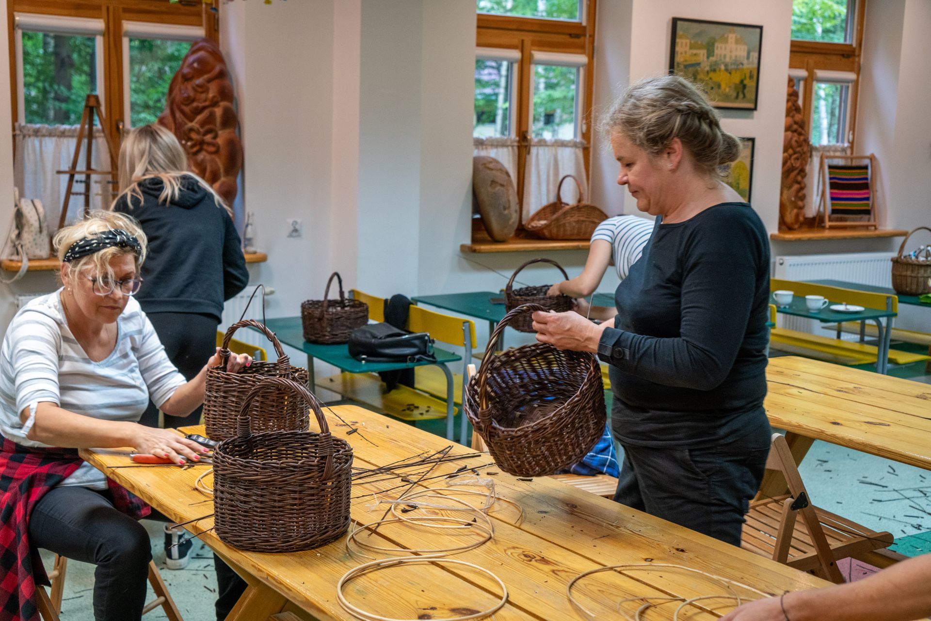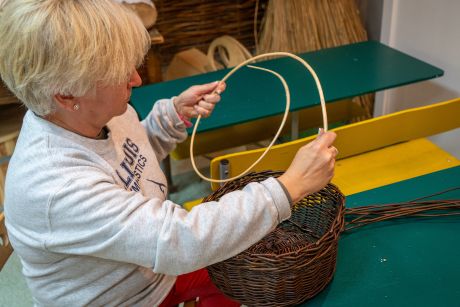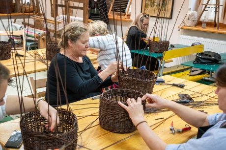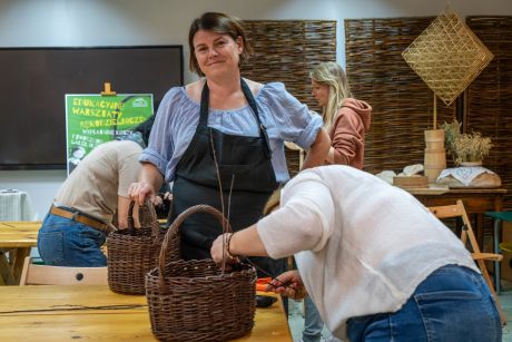 Uczestniczki zapoznały się z tradycjami wikliniarstwa w regionie radomskim, nauczyły się przygotowywać wiklinę do pracy, poznały podstawowe sploty i wykonały własny wiklinowy kosz z pałąkiem – tzw. „kosz na grzyby”.