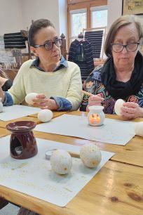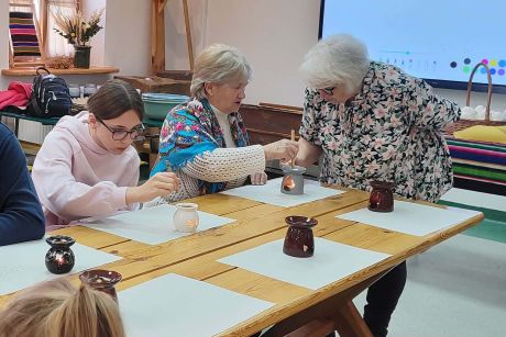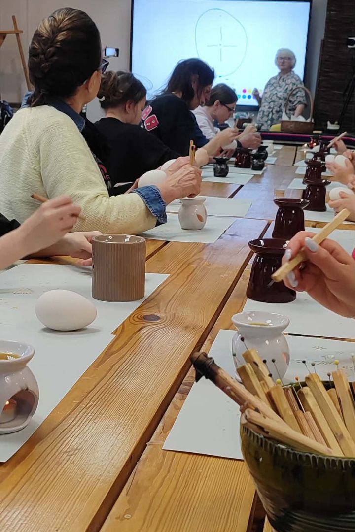 Podczas warsztatów uczestnicy poznali historię oraz znaczenie pisanek – jednego z najbardziej rozpoznawalnych symboli Wielkanocy. Prowadząca zajęcia twórczyni ludowa Maria Ostrowska opowiedziała o technice batikowej, która od pokoleń była najczęściej stosowana w regionie radomskim. Uczestnicy mogli zobaczyć, jak przy pomocy rozgrzanego wosku nanosi się wzory na skorupce jajka, a następnie jak barwi się je naturalnymi barwnikami, aby po usunięciu wosku odsłonić charakterystyczny jasny wzór na kolorowym tle.