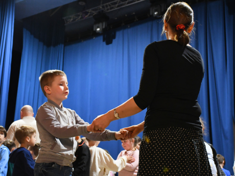 Dużym atutem warsztatów była możliwość bezpośredniego kontaktu z żywą muzyką ludową, która towarzyszyła uczestnikom podczas zajęć. Wspólne śpiewy, rytm i ruch sprawiły, że tradycja stała się dla młodych odbiorców bliska i zrozumiała. Warsztaty były nie tylko lekcją historii, ale także inspirującym doświadczeniem, które pokazało, jak wiele radości niesie wspólne muzykowanie i taniec.