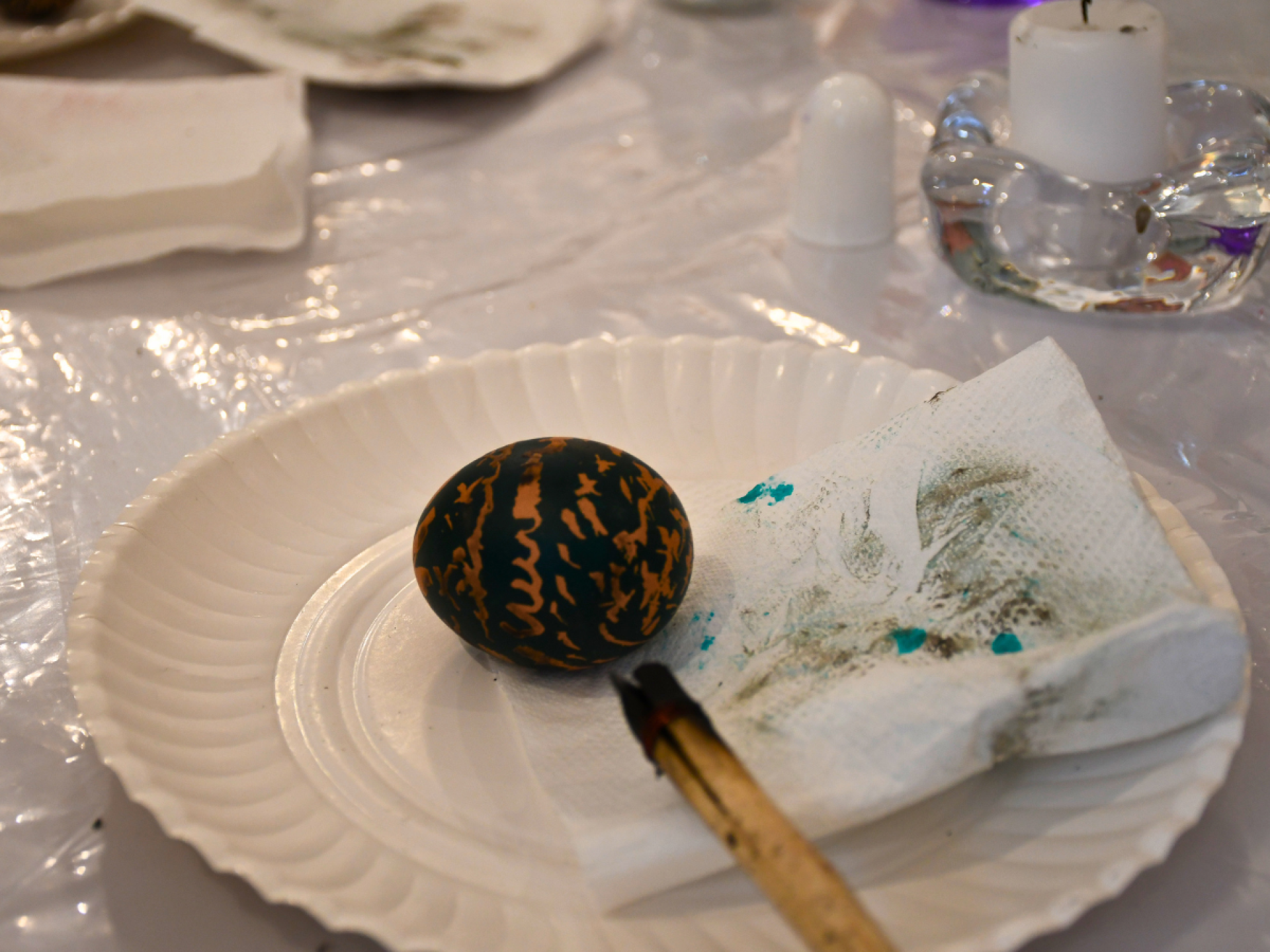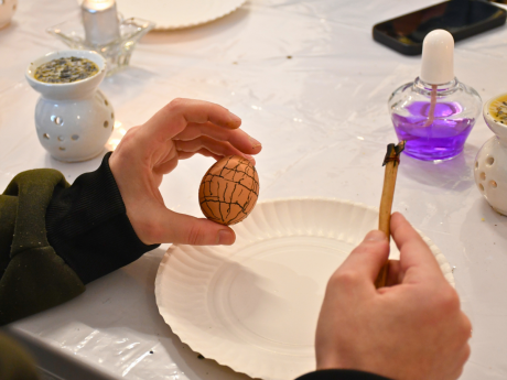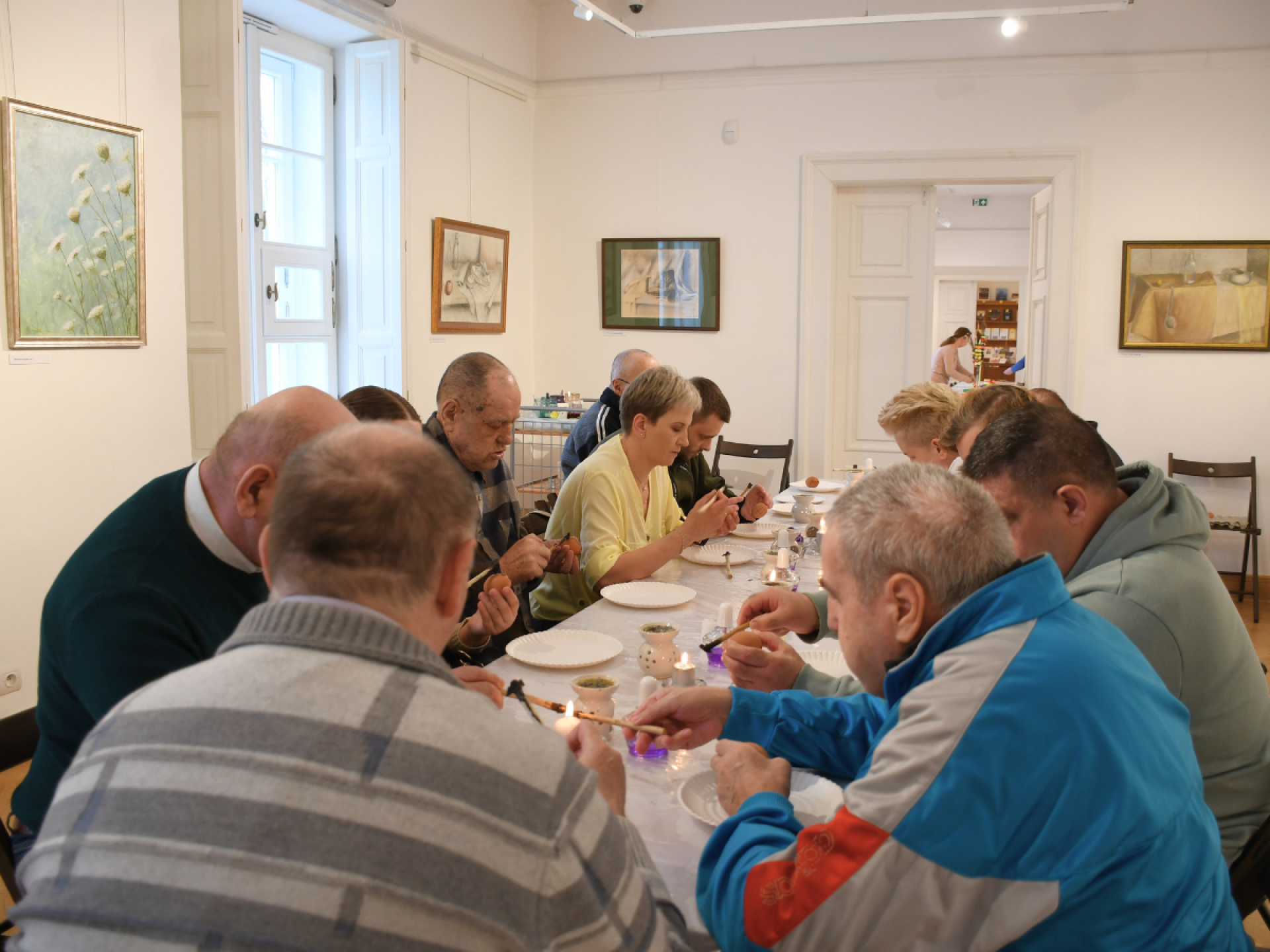 W części warsztatowej uczestnicy wykonali tradycyjne pisanki metodą batikową – jedną z najstarszych technik zdobienia jaj. Powstały niepowtarzalne, ręcznie wykonane dekoracje, które nawiązują do bogatego dziedzictwa kultury ludowej.