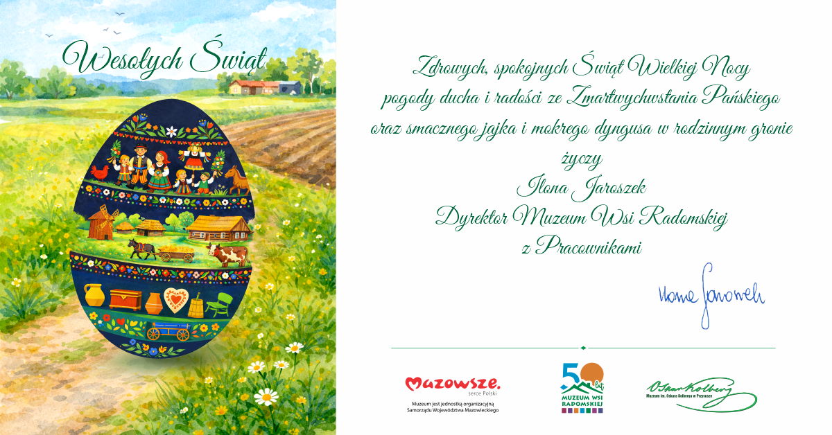 Z okazji zbliżających się Świąt Wielkanocnych życzenia składa Dyrektor Muzeum Wsi Radomskiej Ilona Jaroszek.