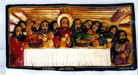 Płaskorzeźba w drewnie: Jerzy Krześniak, „Ostatnia wieczerza” ze zbiorów Muzeum Wsi Radomskiej