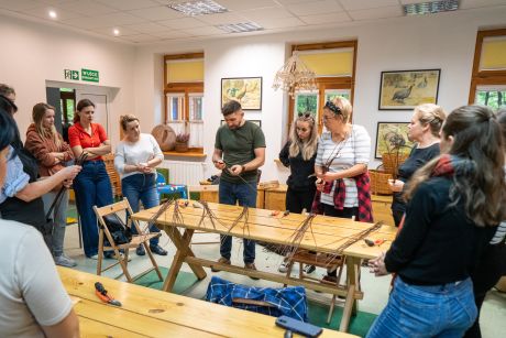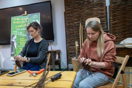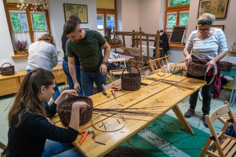 Uczestniczki zapoznały się z tradycjami wikliniarstwa w regionie radomskim, nauczyły się przygotowywać wiklinę do pracy, poznały podstawowe sploty i wykonały własny wiklinowy kosz z pałąkiem – tzw. „kosz na grzyby”.